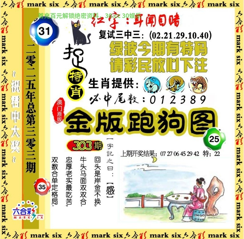 | 303期 | 牛 | 绿单 | 0 | 开:兔15中 |